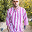 Camicia misto lino (55% lino - 45% cotone) con manica a 3/4 a sbuffo e bottone in legno.